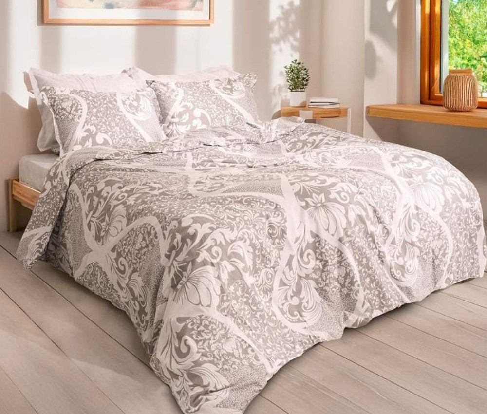 Σετ που περιλαμβάνει: παπλωματοθήκη υπέρδιπλη με διάσταση 220x240cm και 2 μαξιλαροθήκες με διάσταση 50x70cm.